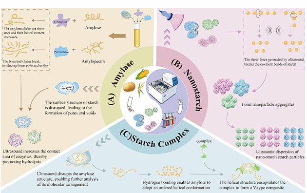 本综述概述了超声波功率、时间、温度及淀粉浓度对淀粉布局取理化性质的影响。总结发觉,适度提崇高高贵声波功率可加强机械效应,推进淀粉颗粒概况和内部沉组,但功率过高易导致局部过热和概况凝胶化,从而降低改性效率。通过优化处置时间和淀粉浓度,可实现颗粒尺寸、结晶度及功能特征的调控。超声处置可淀粉的结晶布局,导致链断裂取沉排,推进无定形化,并显著改变其糊化特征、凝胶性及消化性。改性后的淀粉概况粗拙多孔,吸水性和彼此感化能力加强。